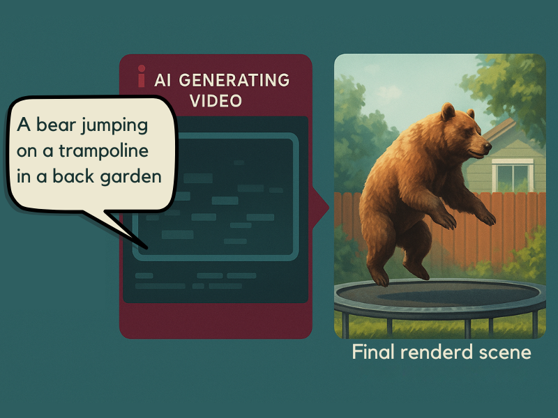 “A bear jumping on a trampoline in a back garden”, and within seconds, the model produces footage that looks like it was filmed on a real camera.